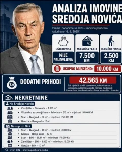 Prema istim tvrdnjama, Nović posjeduje zemljište, vikendicu i stan, dok se dodatna imovina vodi na članove njegove porodice.