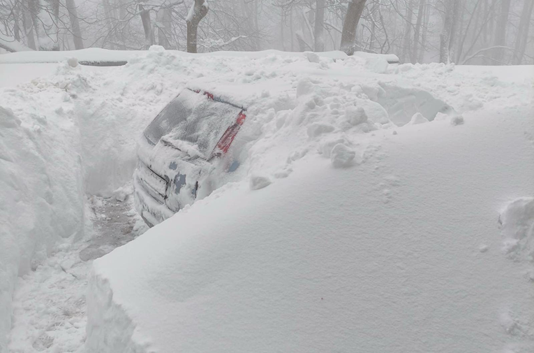 Na samom vrhu, visina snijega prelazi 70 centimetara, dok na pojedinim mjestima snježni nanosi dosežu i preko 150 centimetara, zbog čega su pojedina vozila u potpunosti zatrpana i gotovo nevidljiva, prenosi Index.hr.