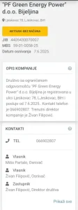 Kompanija „PF green energy power“ registrovana je u maju prošle godine. Kao direktor je upisan Živan Filipović, a među navedenim suvlasnicima na portalu AKTA nalazi se i Mišo Partalo, dugogodišnji šef obezbjeđenja bivšeg predsjednika Republike Srpske.