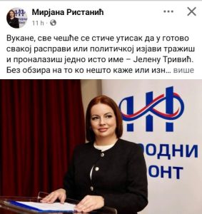 Povod za najnoviji sukob bio je komentar poslanika Željko Dubravac, koji je iznio stav da bi Draško Stanivuković i Branko Blanuša trebali biti kandidati opozicije za inokosne funkcije. Prema Vukanovićevim riječima, situacija se mogla smiriti da je Trivić reagovala kratkom objavom i jasno se ogradila od tog stava, ali je umjesto toga uslijedila, kako tvrdi, organizirana serija napada iz redova Narodnog fronta.