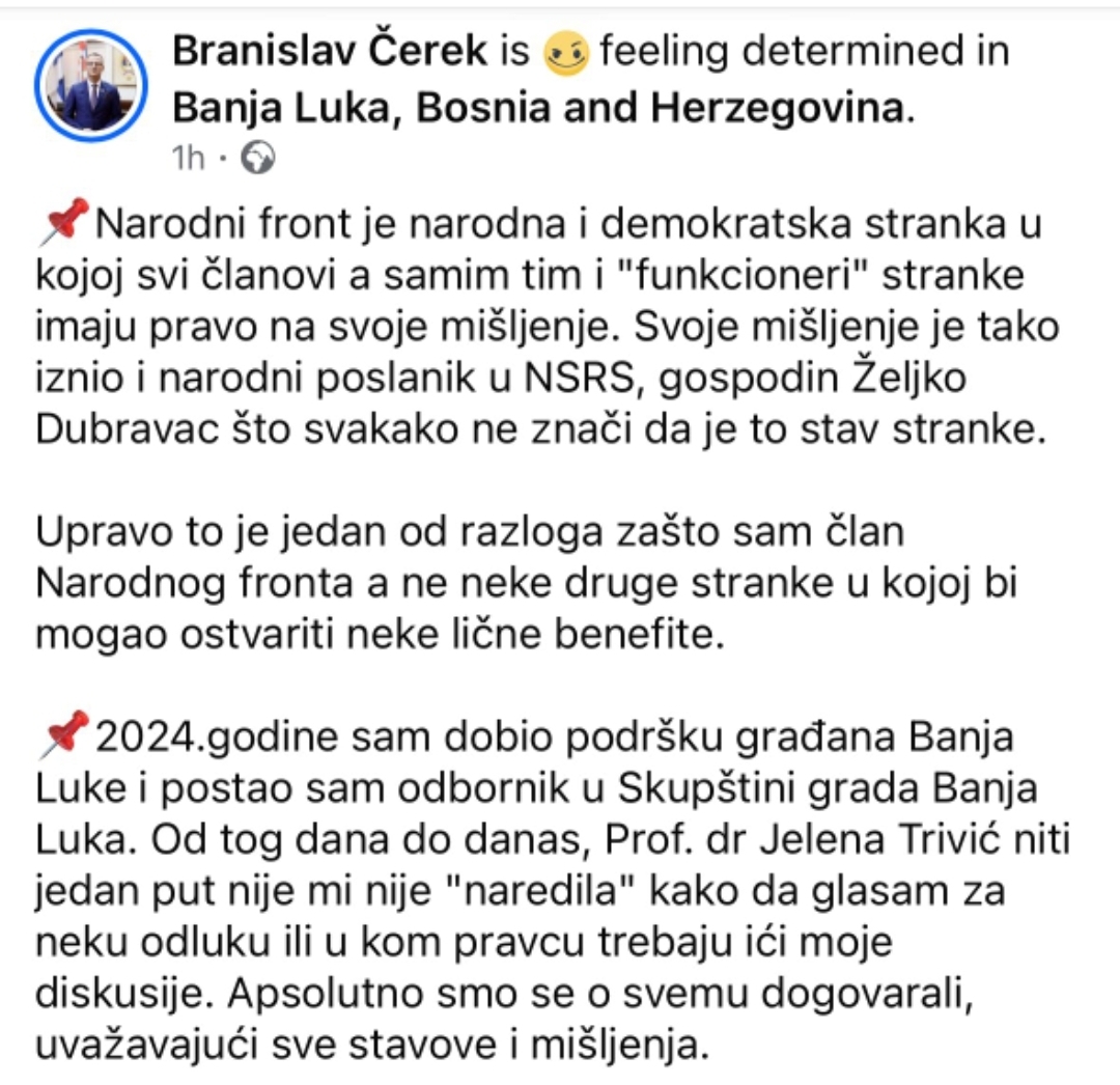 Političke tenzije unutar opozicije u Republika Srpska dodatno su eskalirale nakon javnih polemika između lidera Lista za pravdu i red Nebojša Vukanović i predstavnika Narodni front, stranke koju predvodi Jelena Trivić. Vukanović je poručio da su napadi na njega i njegovu stranku politički motivirani, naglasivši da takve poteze neće ostaviti bez odgovora.