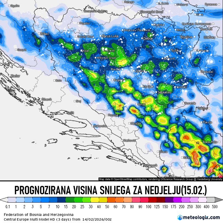 “Najobilnije padavine prognoziraju se na području sjeveroistočne Bosne, te djelimično u sjevernim i centralnim krajevima. Do nedjelje popodne očekuje se ukupno između 15 i 30 mm”, objavljeno je na Facebook stranici BHmeteo.